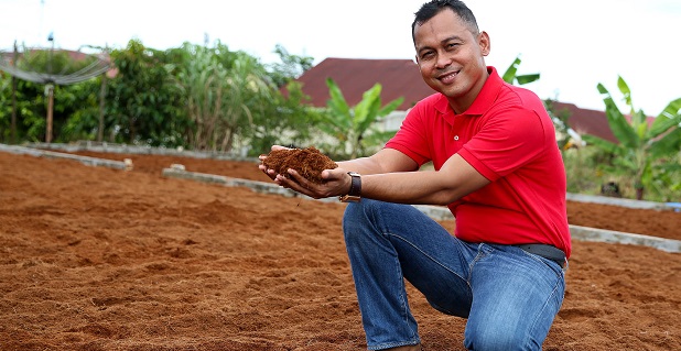 Sulaiman is a man with both his feet firmly planted on the ground. Every day, he surveys the operations of his coco peat company, which supplies 200 tonnes of the ecologically friendly, bio-degradable and recyclable material derived from the husk of the coconut per month to APRIL's operations in Riau.